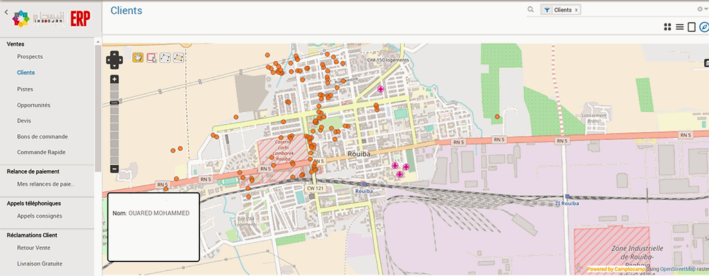 - Géolocalisation des clients et des activités de l’équipe commerciale.