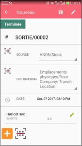 - Sélection de l’emplacement source/destination à partir d’une liste ou code à barre.